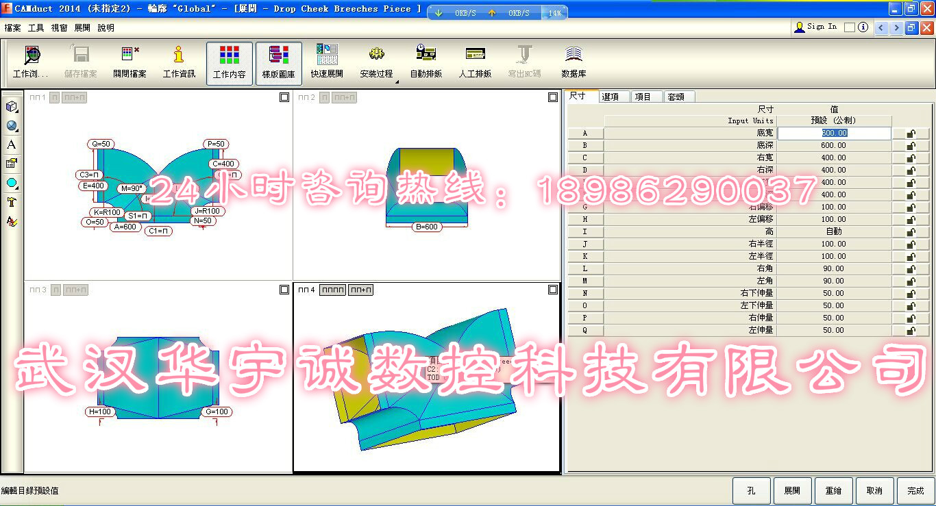 武漢華宇誠數(shù)控科技有限公司經(jīng)過反復(fù)試驗,成功研制出了通風(fēng)管道專用數(shù)控等離子切割機,配合專用的風(fēng)管切割軟件,自動生成圖紙、導(dǎo)出加工程序。更加適應(yīng)風(fēng)管展開切割需求,功能更適應(yīng)風(fēng)管展開切割、操作更加便捷、成本進一步降低,讓利于客戶。操作人員所需要做的就是在軟件中選擇所需要的風(fēng)管樣式,輸入所需要的尺寸,然后調(diào)出加工程序進行切割就可以了。既方便快捷、又精確實用。